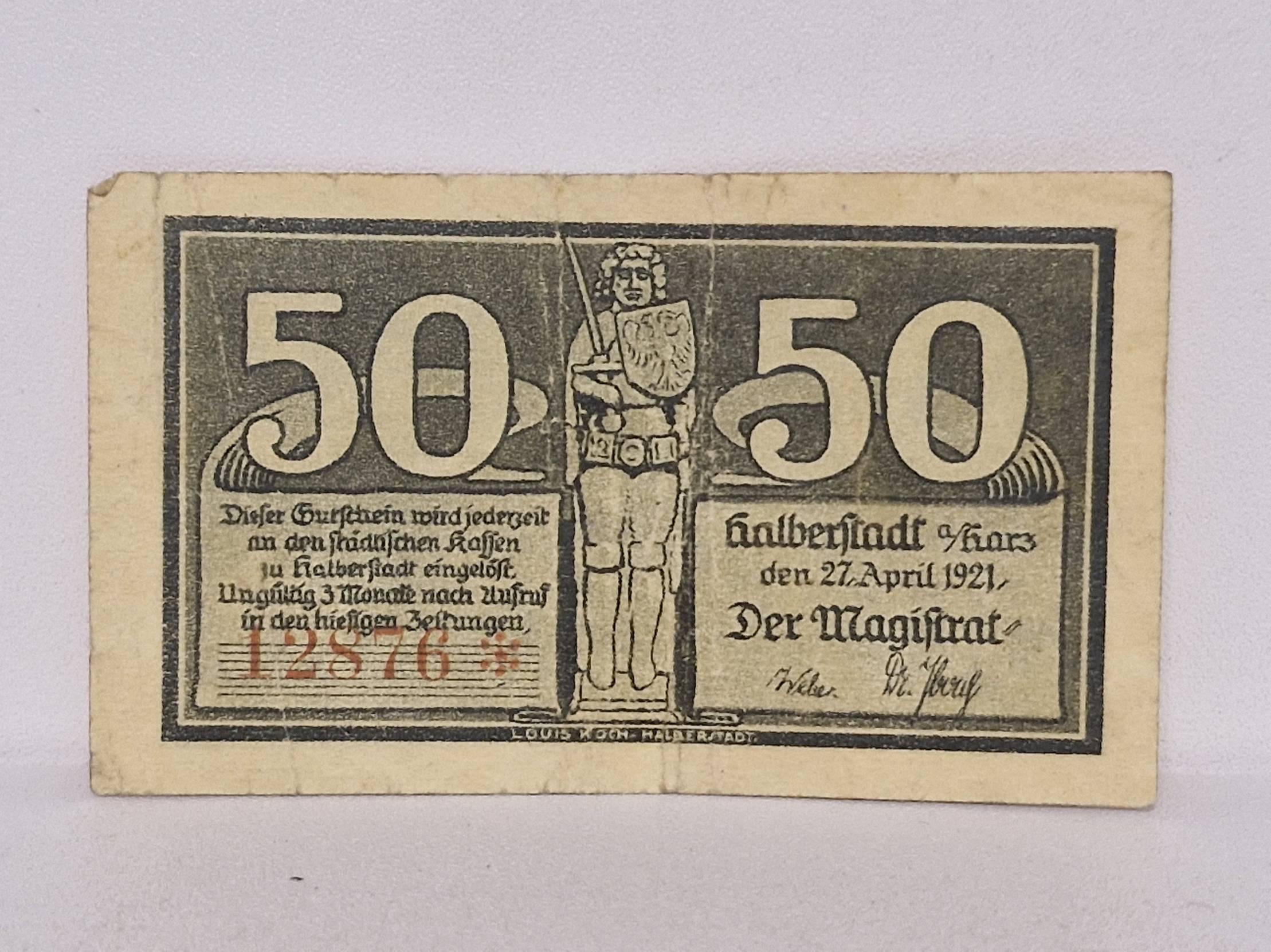 50 Pfennig 1921.04.27 Halberstadt Notgeld Vokietij