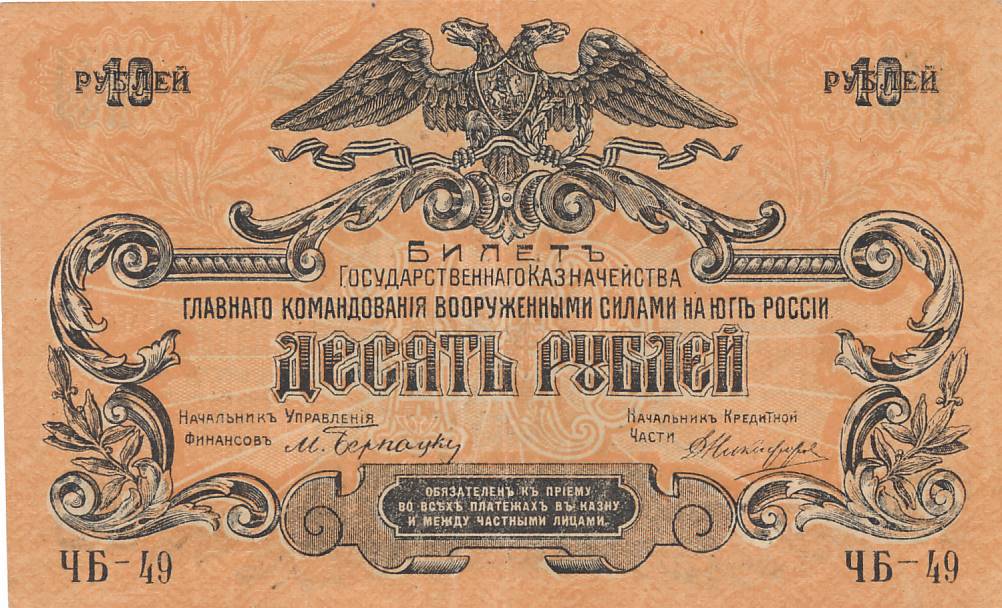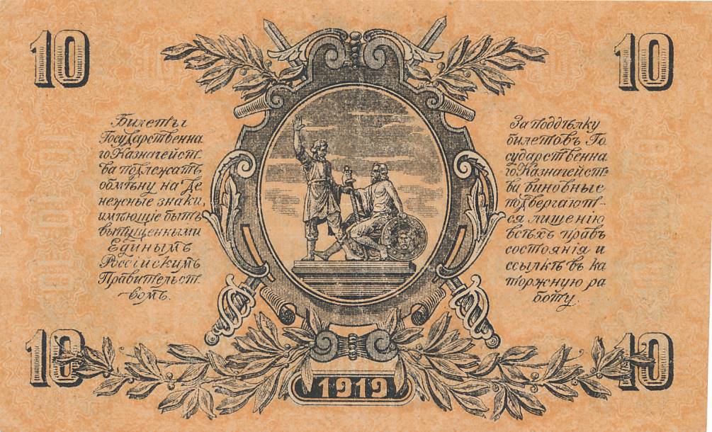 Rusija - VSIUR - 1919 - 10 rubliu - nuo euro