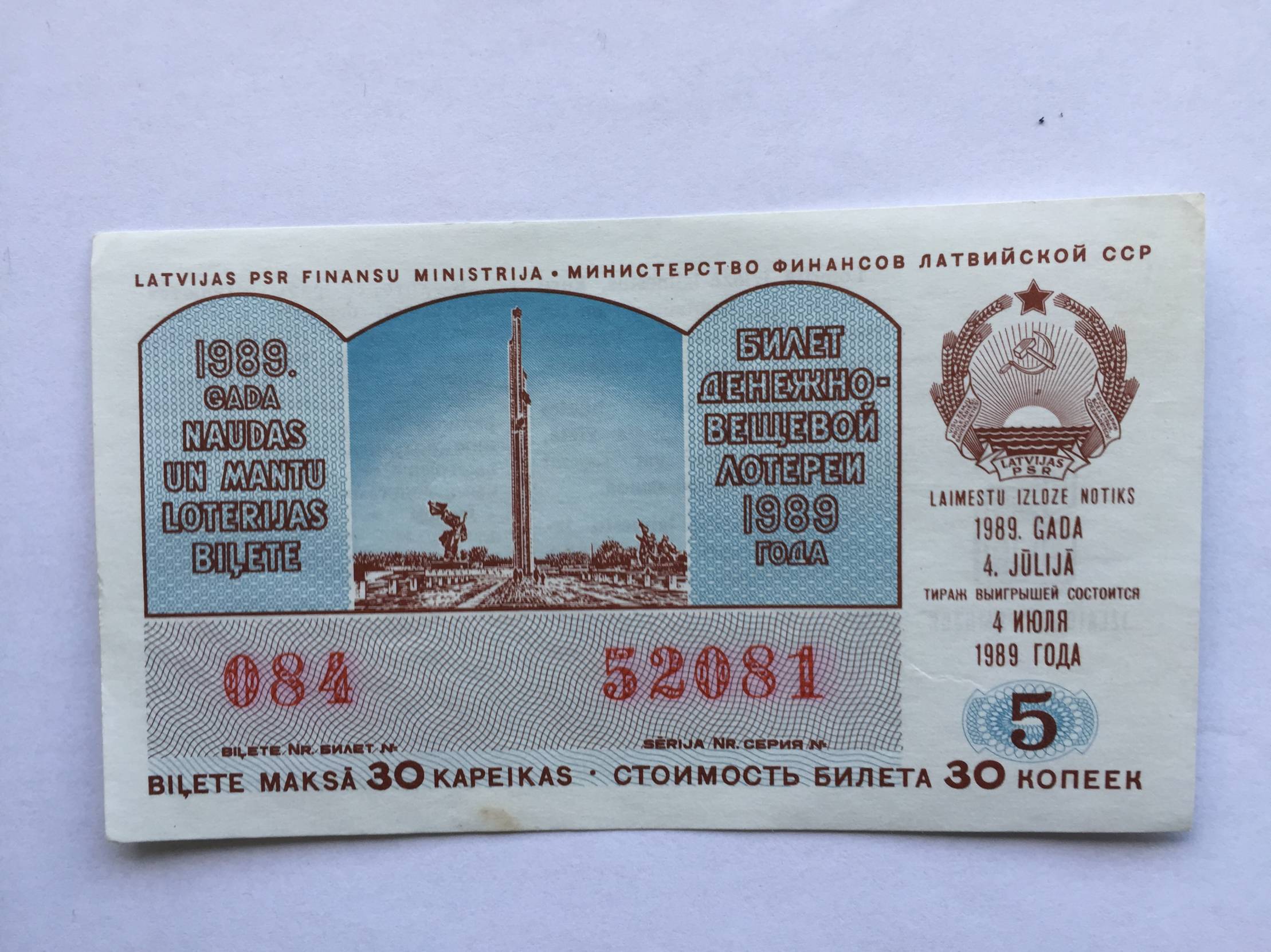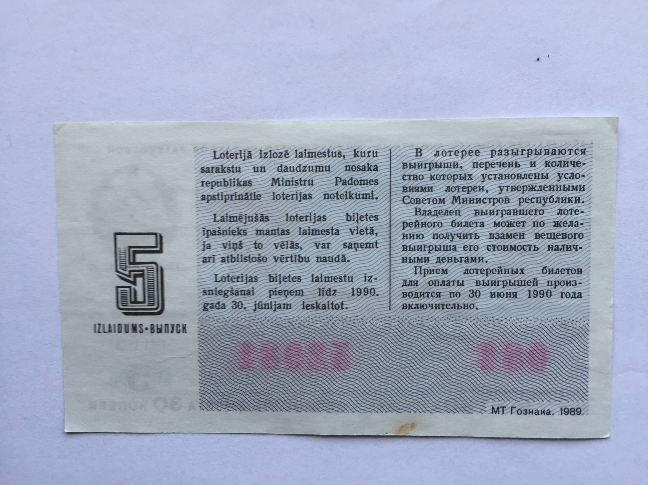 Latvija Loterijos bilietas 1989m.