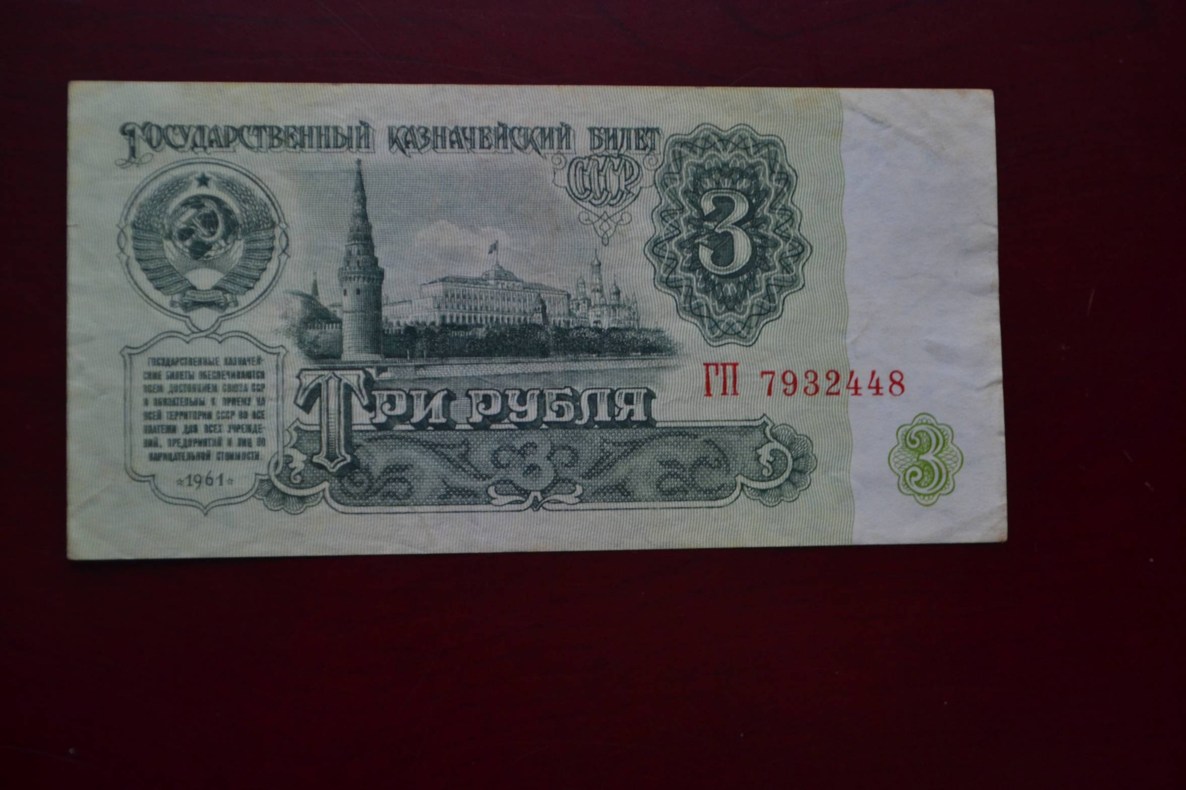 3 Rubliai 1961 m.. Nuo 1 Euro