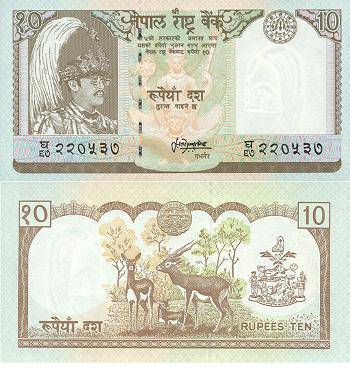 Nepalas 10 rupijų ND(1985-87) m., P#31b