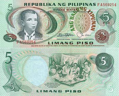 Filipinai 5 pesai ND(1978) m., P#160d
