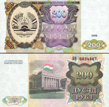 Tadžikistanas 200 rublių 1994 m., P#7a
