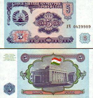Tadžikistanas 5 rubliai 1994 m., P#2a