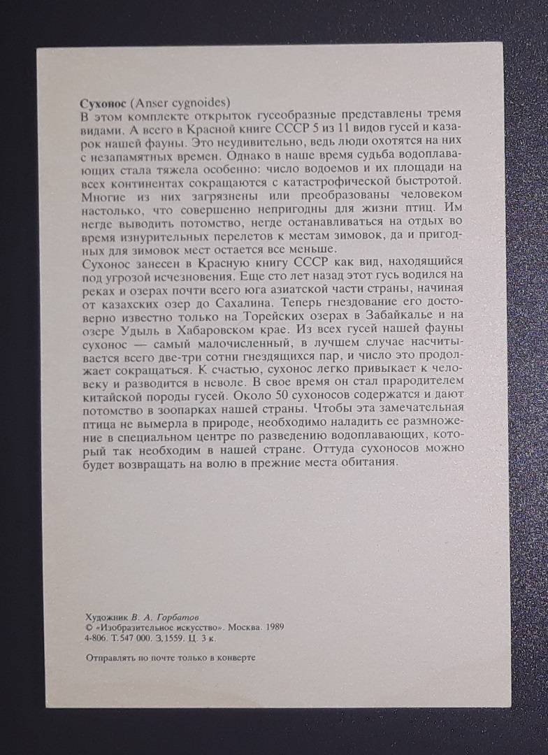 CCCP 1989 WILDLIFE 261 Paukščiai švari