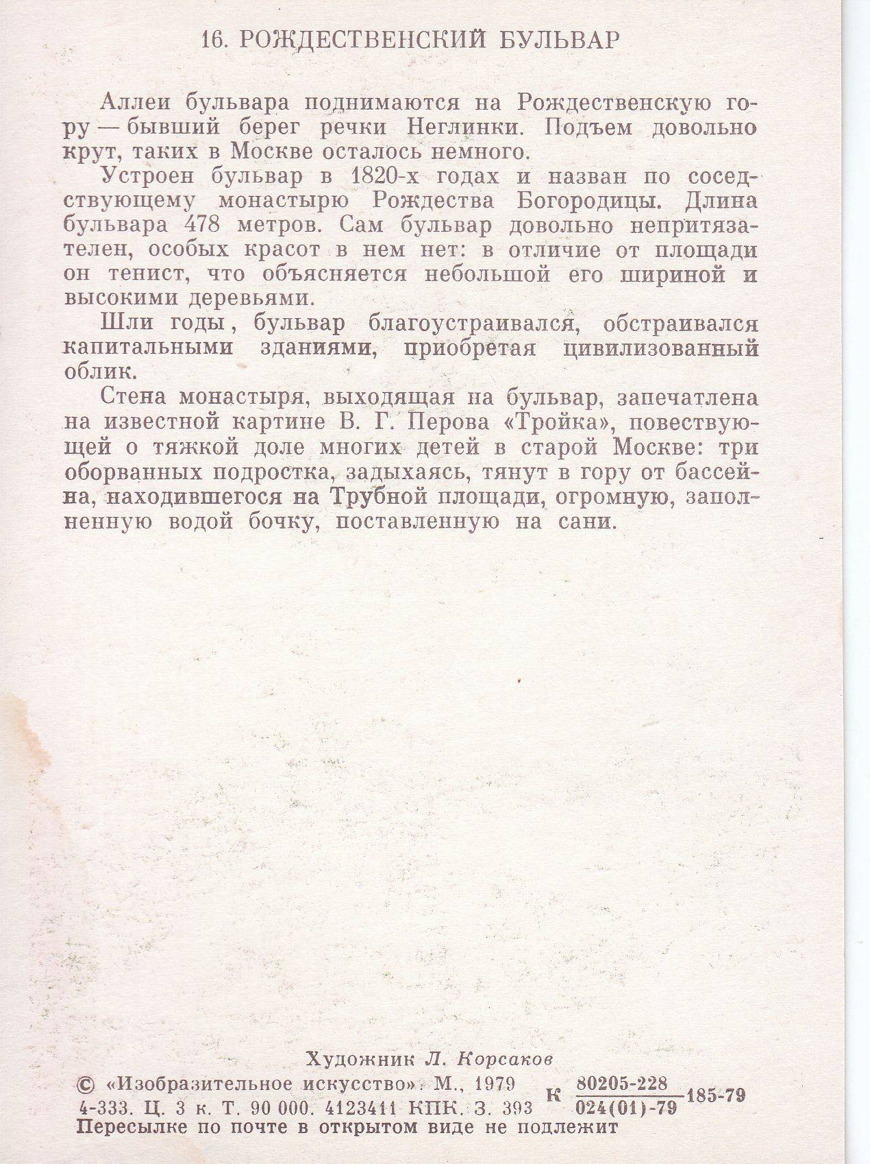 bulvarnoje kolco Moskvy L. Korsakov 1979