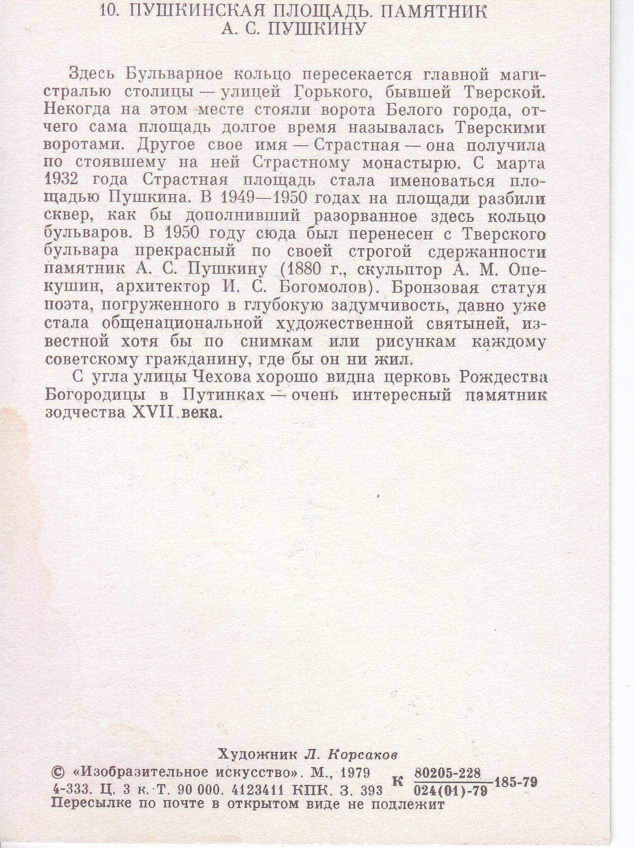 bulvarnoje kolco Moskvy L. Korsakov 1979