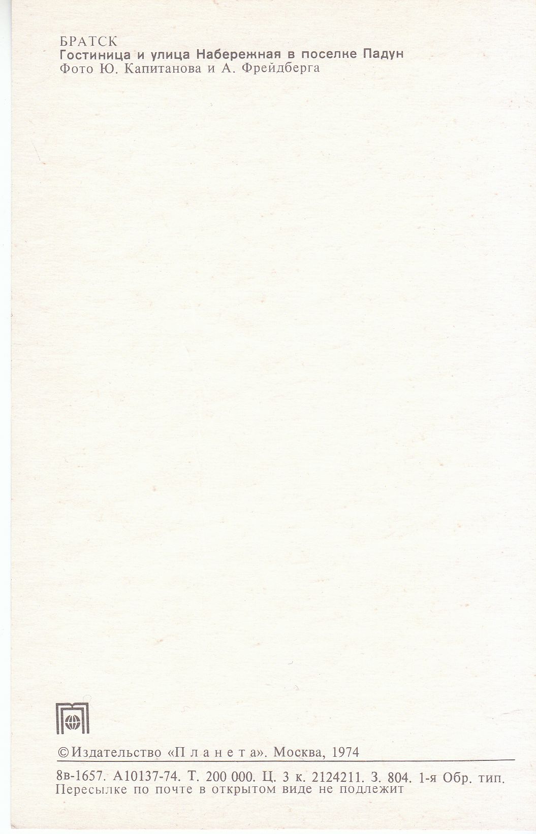 atvirukas su miestais Bratskas 1974