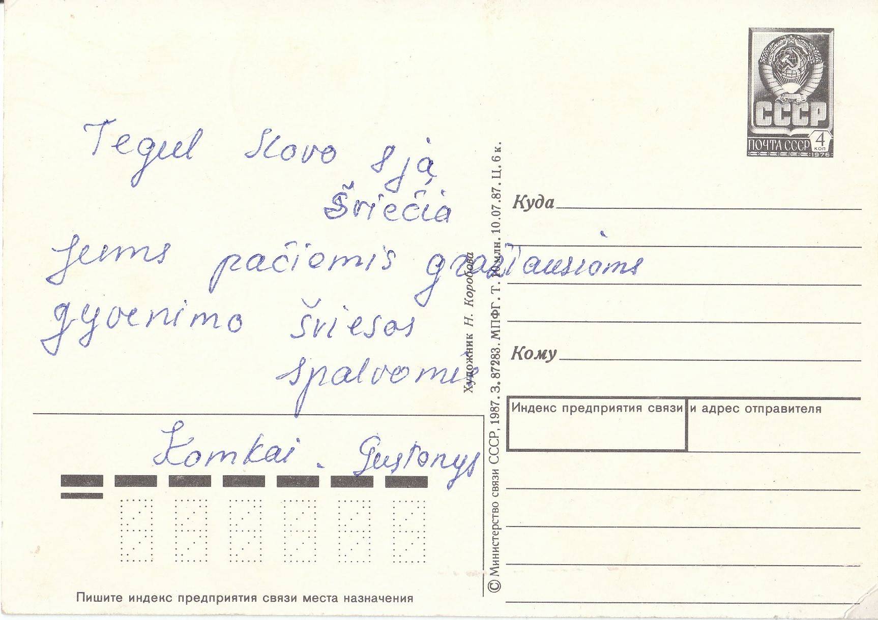 atvirukas su kovo 8 1987