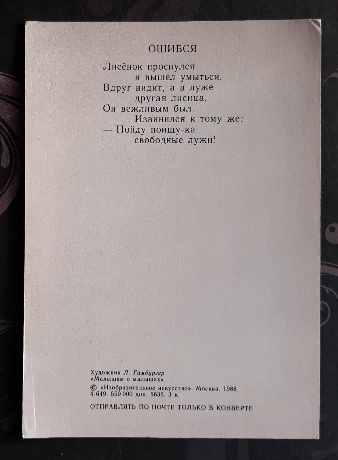 CCCP 1988 Vaikiška, Žvėreliai 259 švari