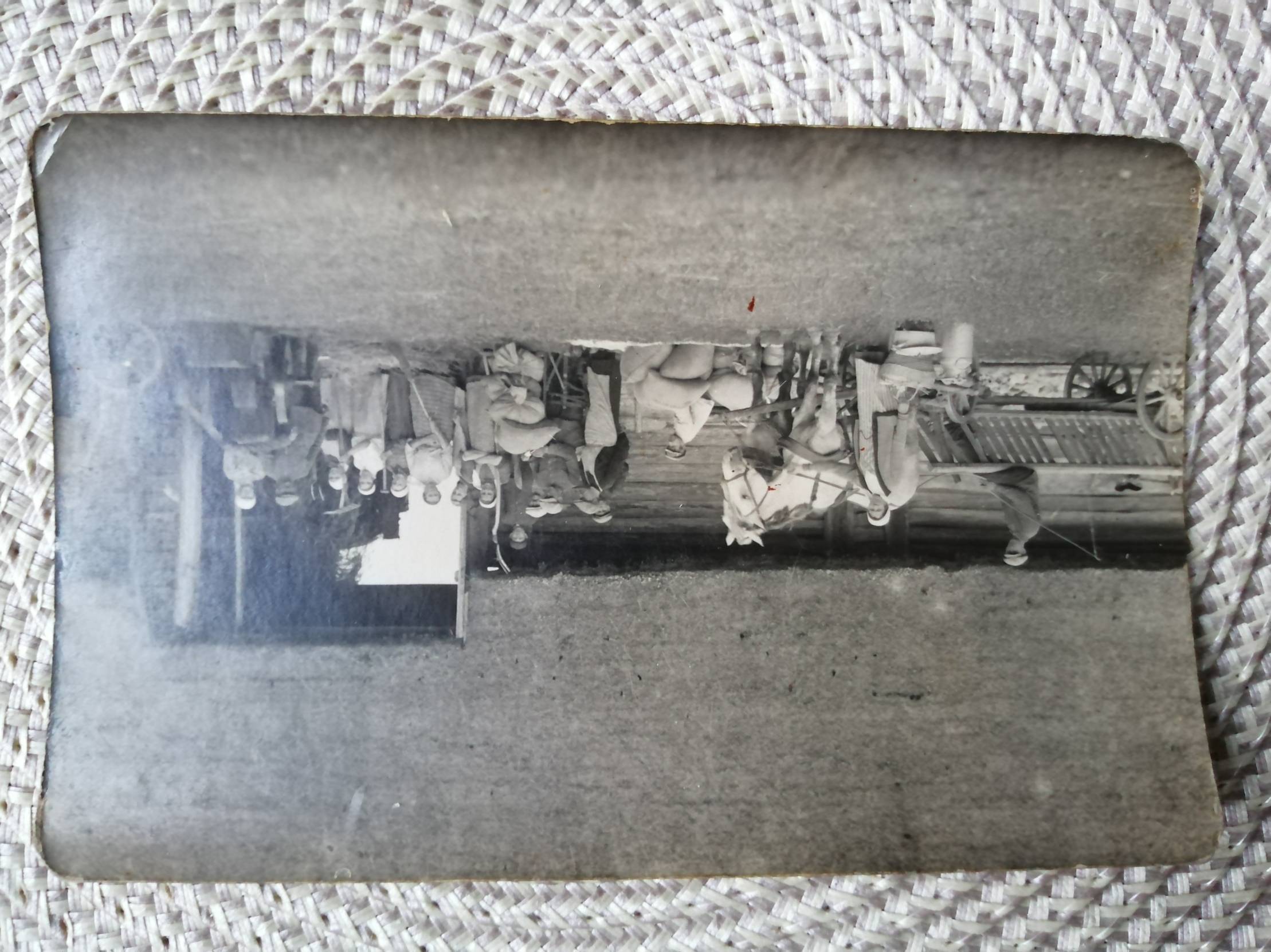 Troškūnai. Ūkininkai prie pastato