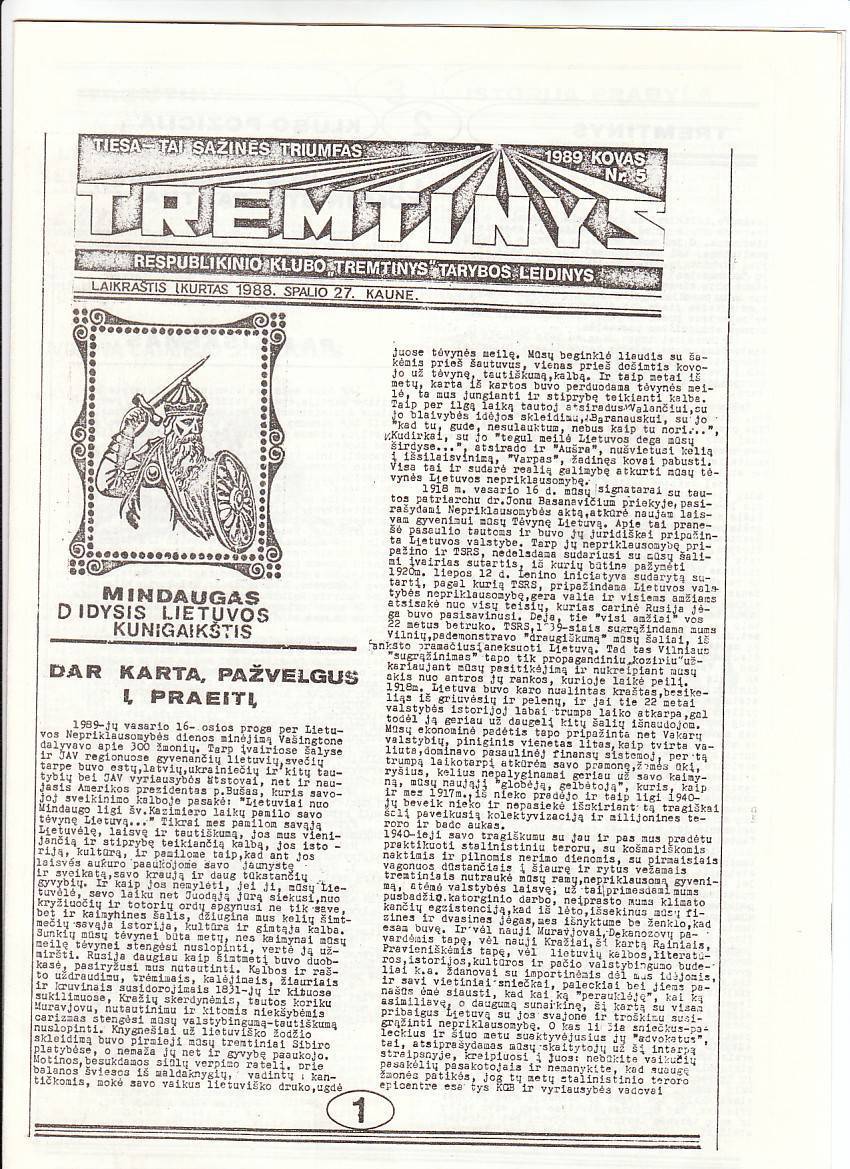 "TREMTINYS" 1989 NR.5