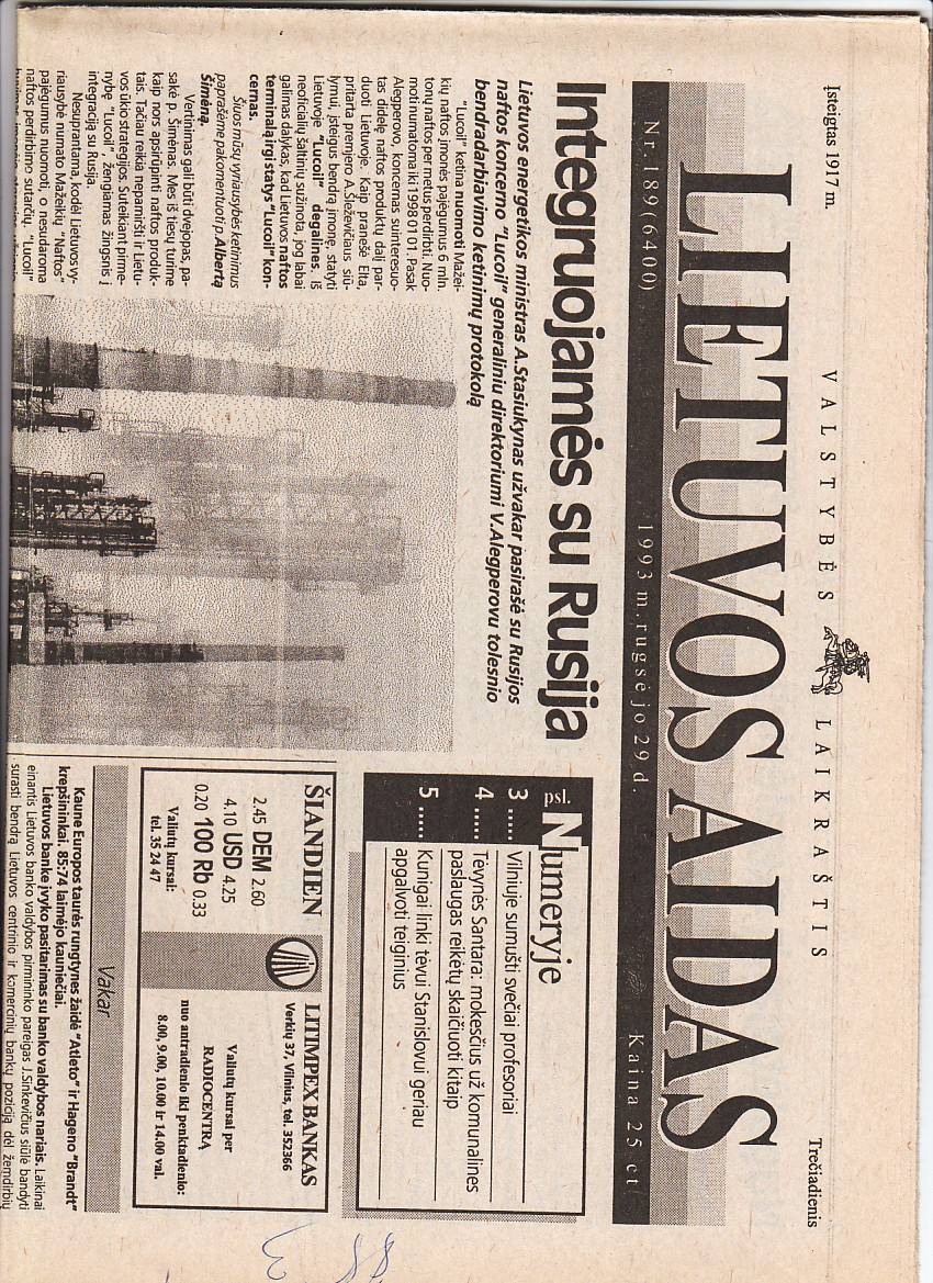 "LIETUVOS AIDAS" 1993 NR.189