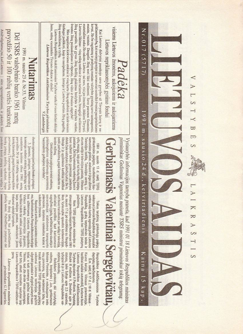 "LIETUVOS AIDAS" 1991 NR.17