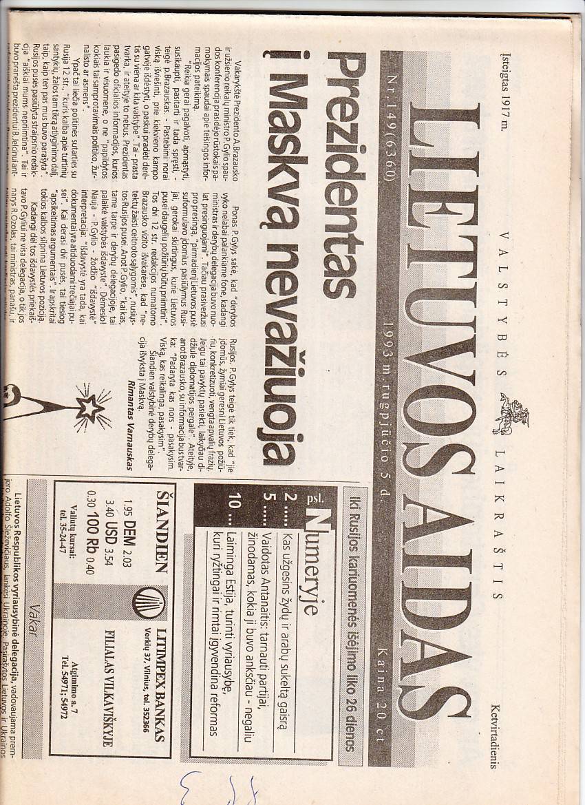 "LIETUVOS AIDAS" 1993 NR.149
