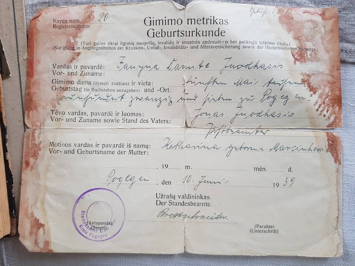 Gimimo metrikas. Pagėgiai
