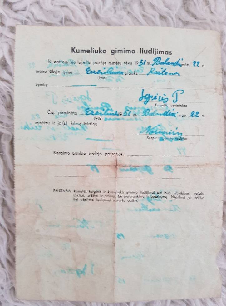 Kumeliuko gimimo liūdijimas