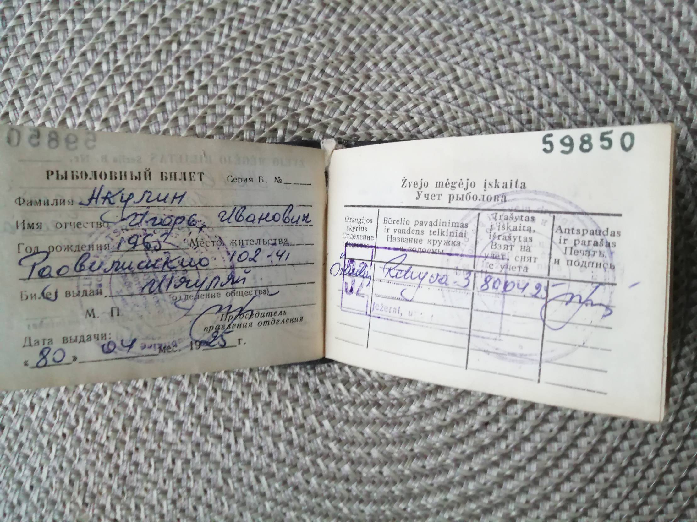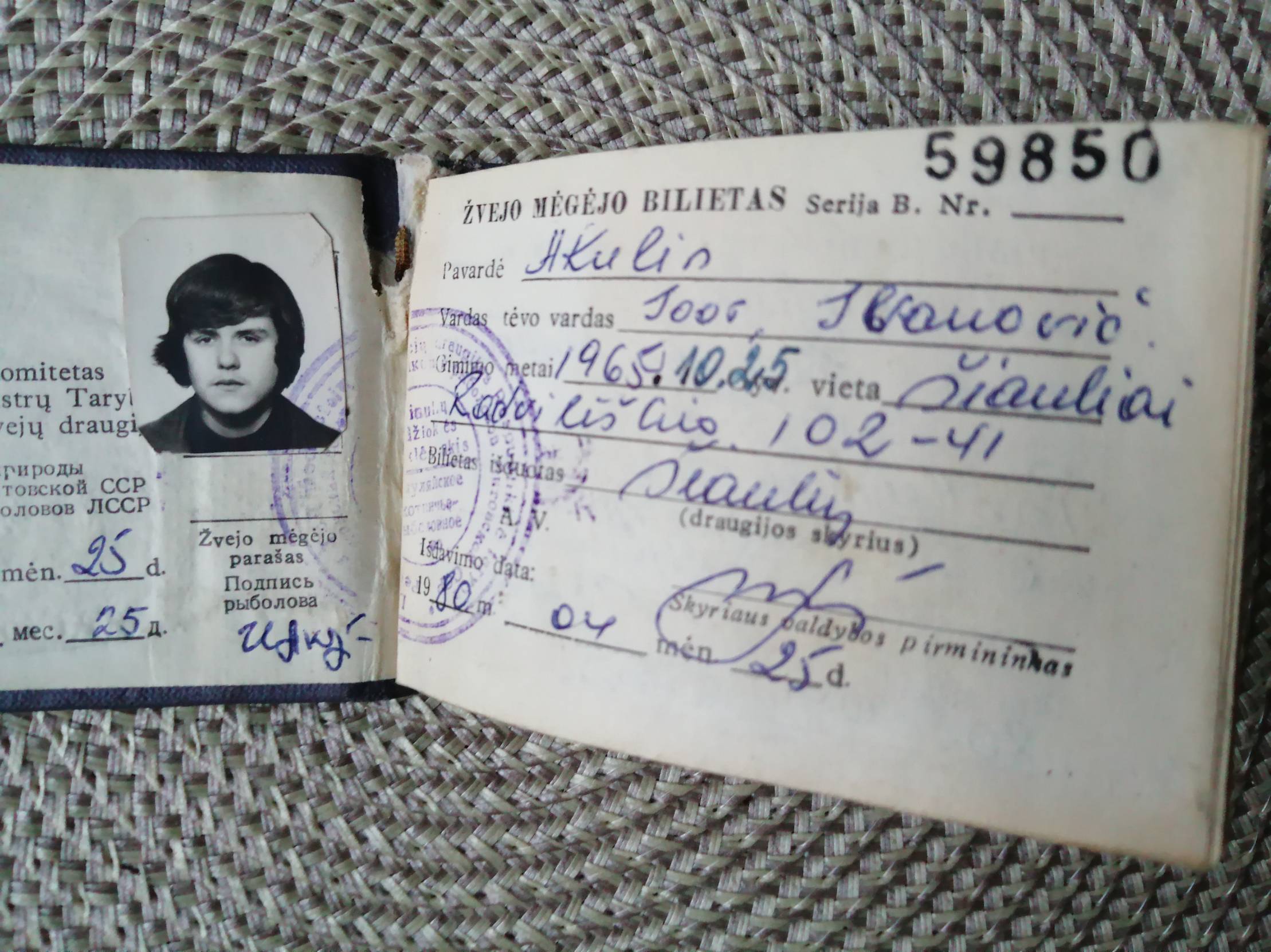 Šiauliai. Žvejo mėgėjo bilietas, 1980