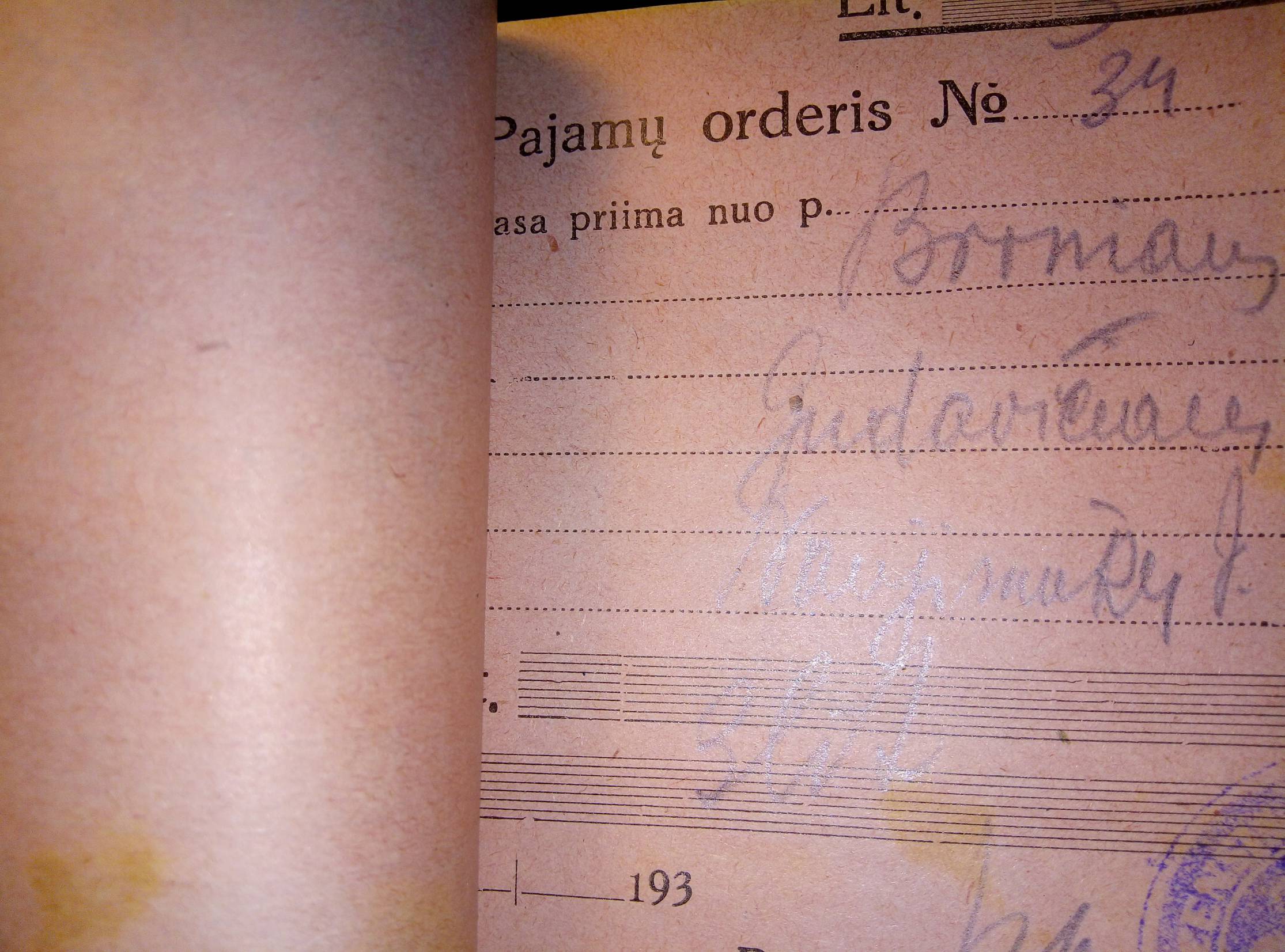 Eržvilko pajamų orderis 1933 34