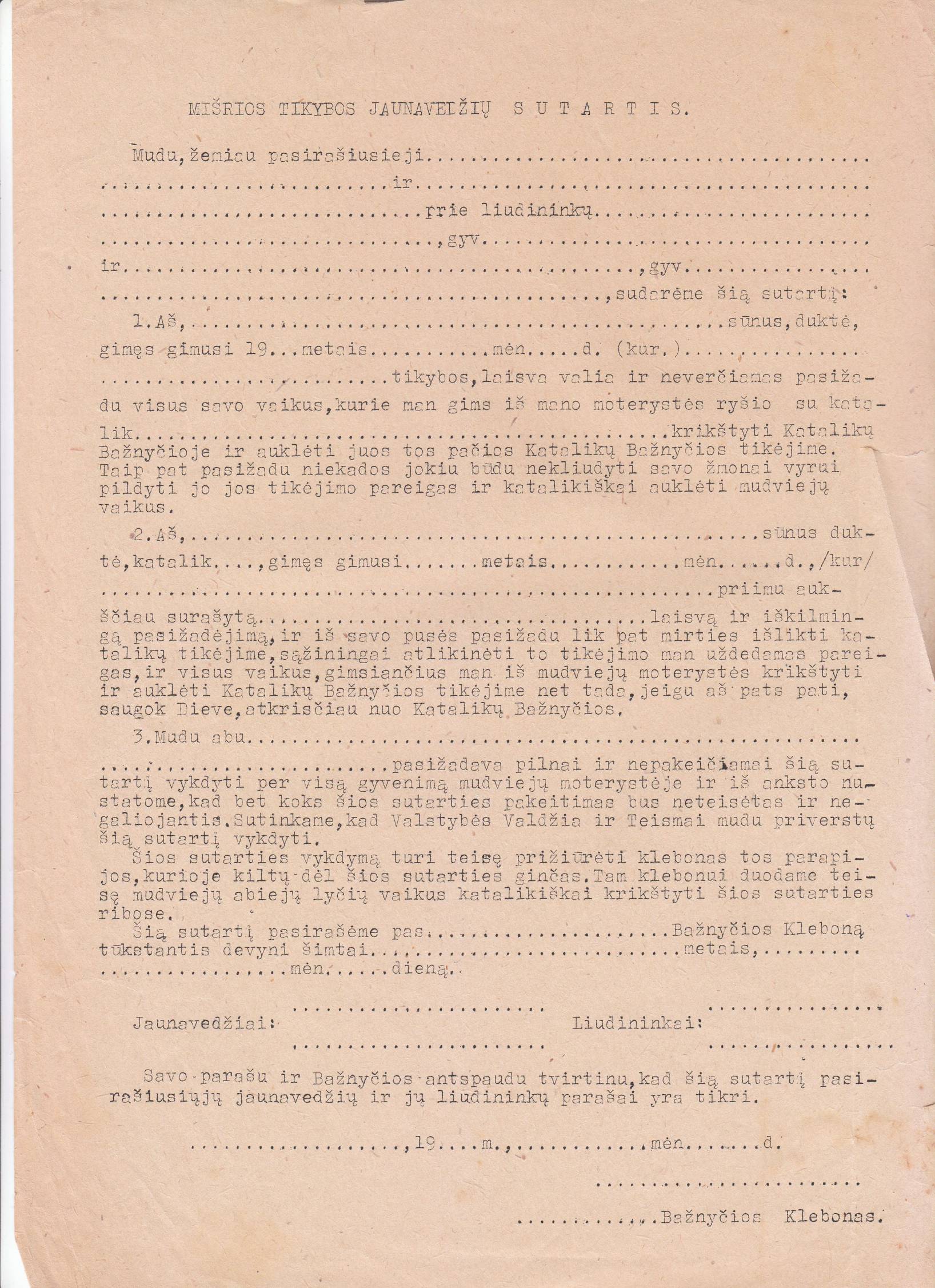 mišrios tikybos jaunavedžių sutartis 1930