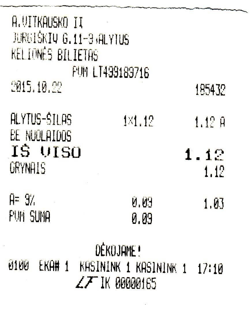 BILIETAS AUTOBUSO ALYTUS