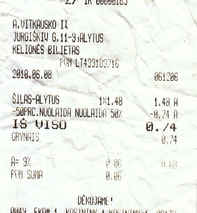 BILIETAS AUTOBUSO ALYTUS