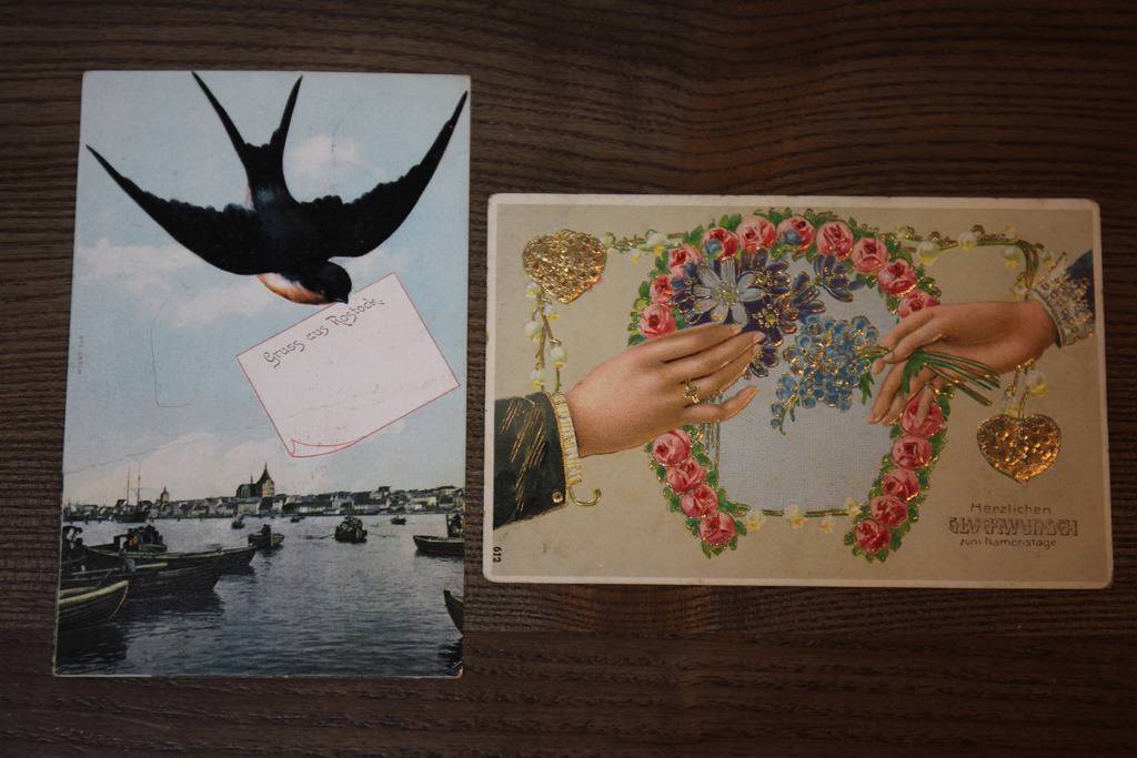 Grus aus rostock.kita atvirute jau parduota carte postale Rostock pasto zenklas 5 pfenning